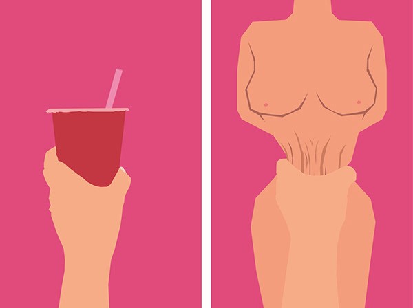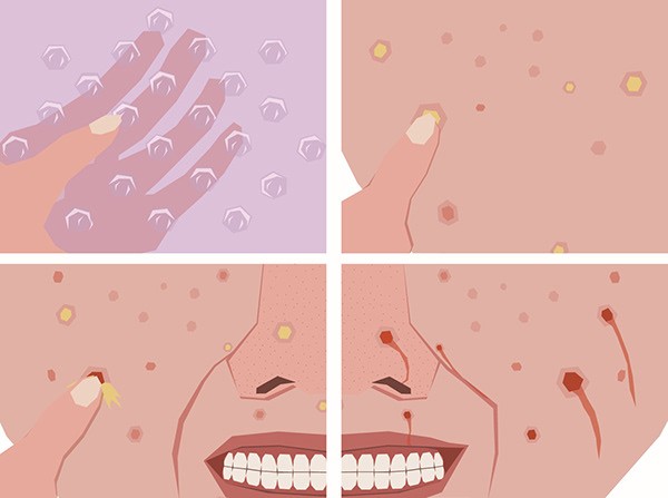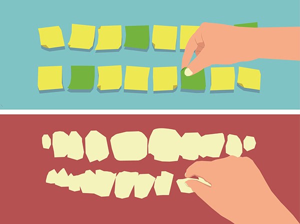 peeling an apple turns into shaving the chin, straightening sticky notes reflects the desire to fix crooked teeth,